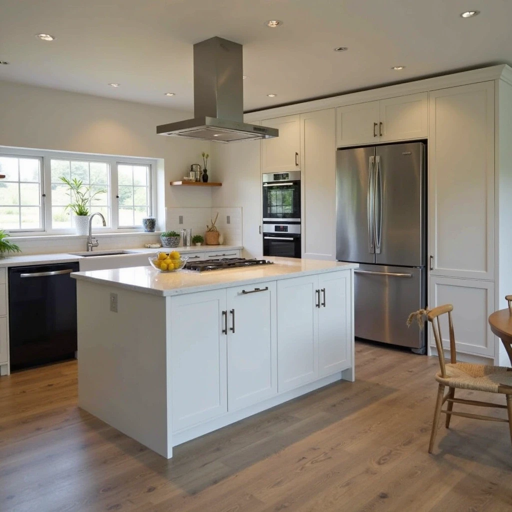 „Unsere alte Küche hatte einen komplizierten Grundriss mit Dachschräge und einem Kamin, der mitten durch den Raum geht. Bei IKEA hieß es nur ‚geht nicht'. Herr Meier von MedelKuchen hat dreimal nachgemessen und eine Lösung gefunden, die jeden Zentimeter nutzt."